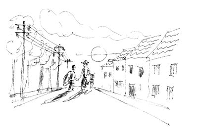 He dusted his ragged clothes and sat down beside his bicycle. “No,