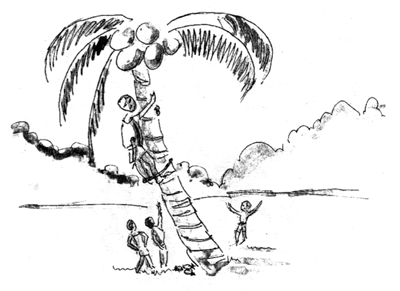 had climbed to cut coconuts. He lay writhing on the ground clutching